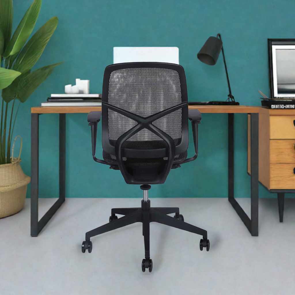Criss Cross Black Mid Back – A compact, breathable mesh chair with lumbar support and tilt lock, perfect for smaller workspaces.