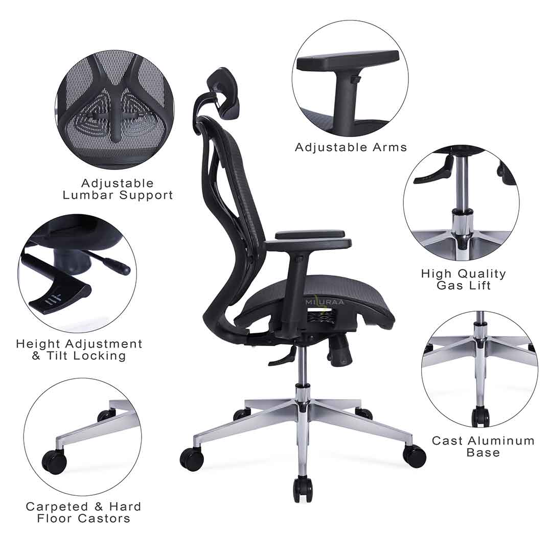 Here are some carefully chosen Misuraa chairs that combine ergonomic design with developer-friendly features. Each one is designed to keep you comfortable and productive, whether you’re working on complex code or handling long meetings.