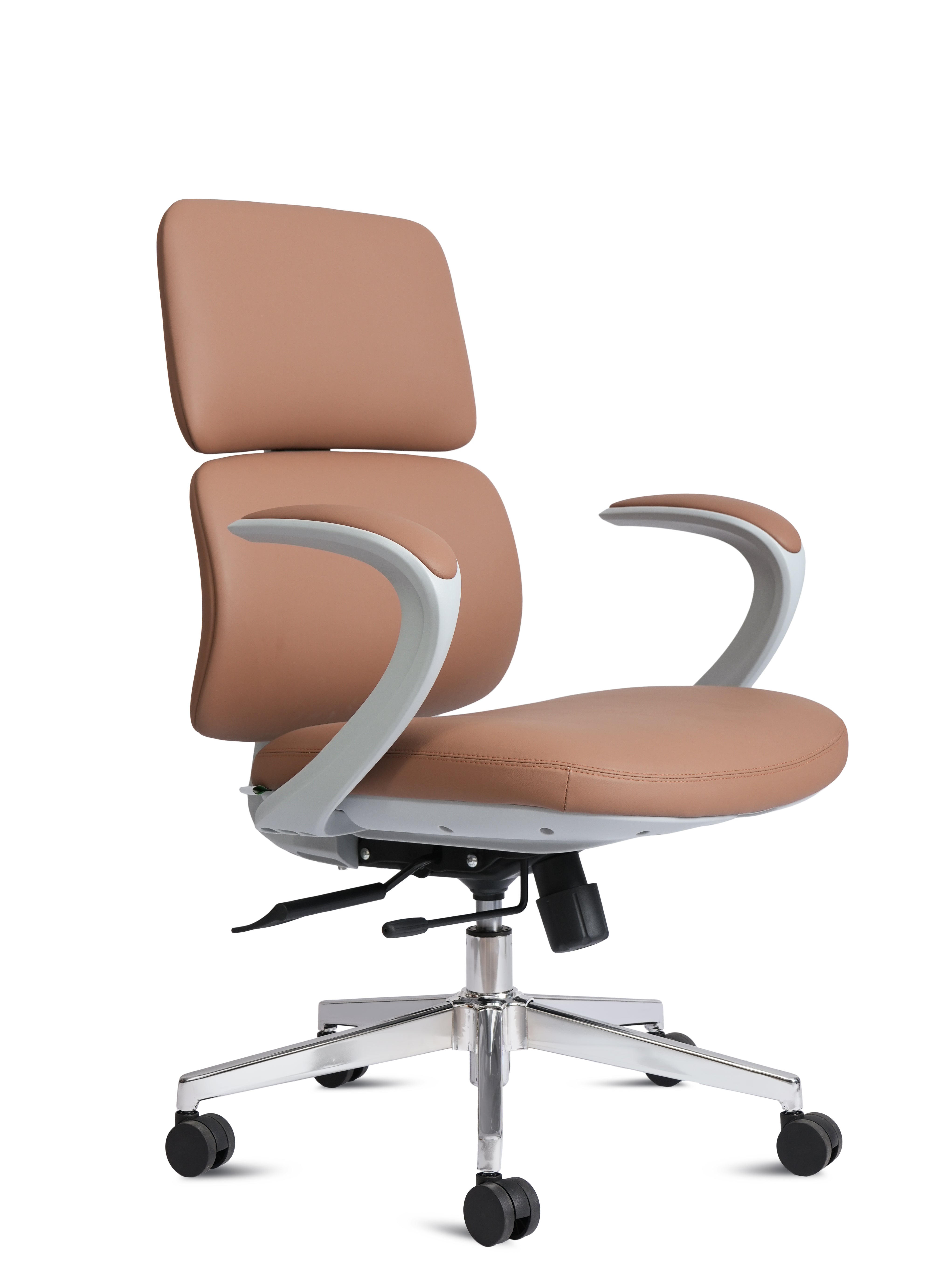 The Paris Mid Back Tan Chair adds a sophisticated touch to your workspace with its rich tan finish and smooth contours. It feels premium, yet the design remains practical for daily use. The mid back structure gives gentle upper and lower back support, making long hours of desk work more comfortable.