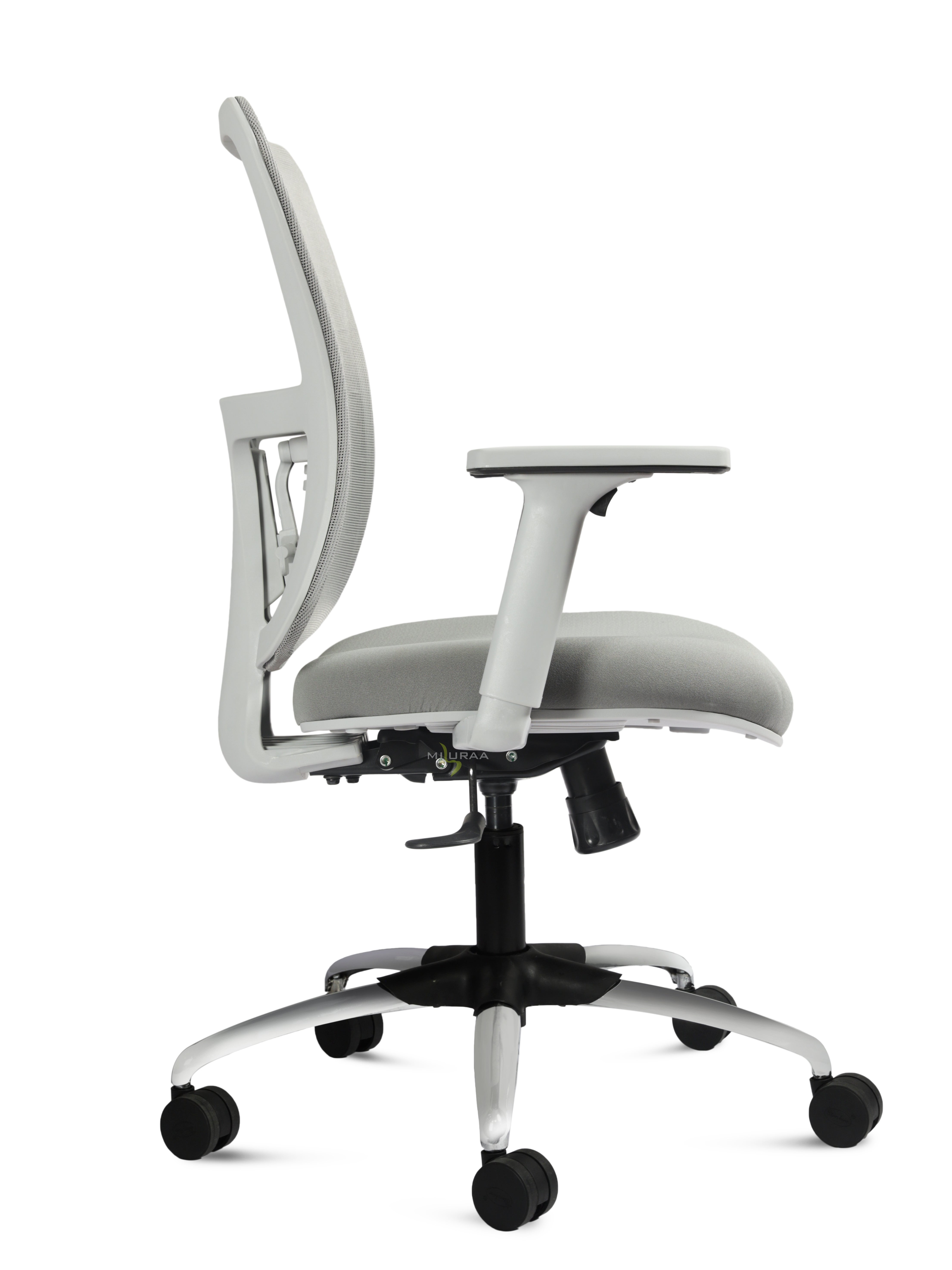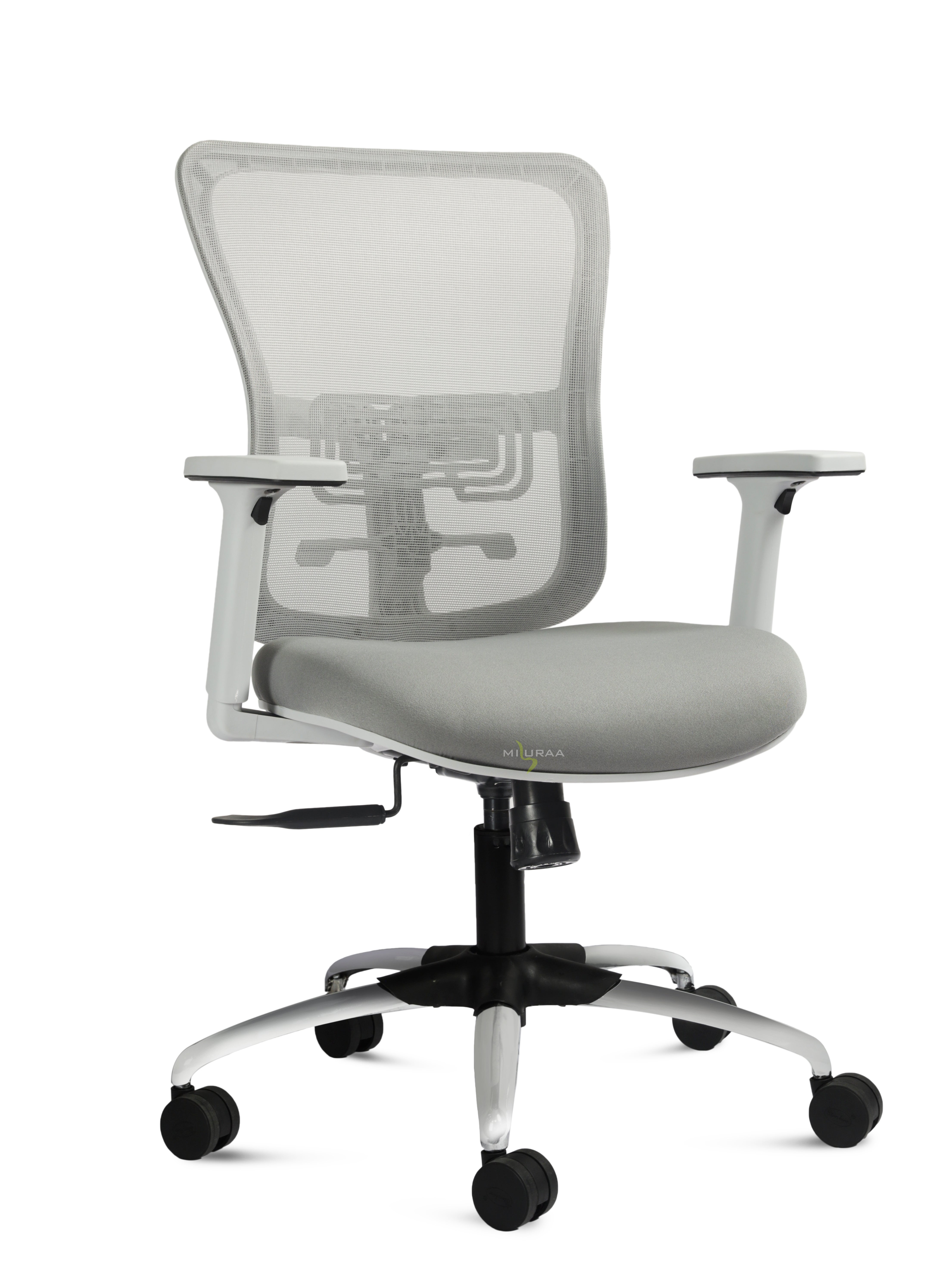 Equipped with adjustable armrests, a smooth height control mechanism, and a durable 5-star base with 360° swivel wheels, the Columbia Grey MB combines practicality with style. Its sleek grey finish makes it a perfect addition to both office and home setups.