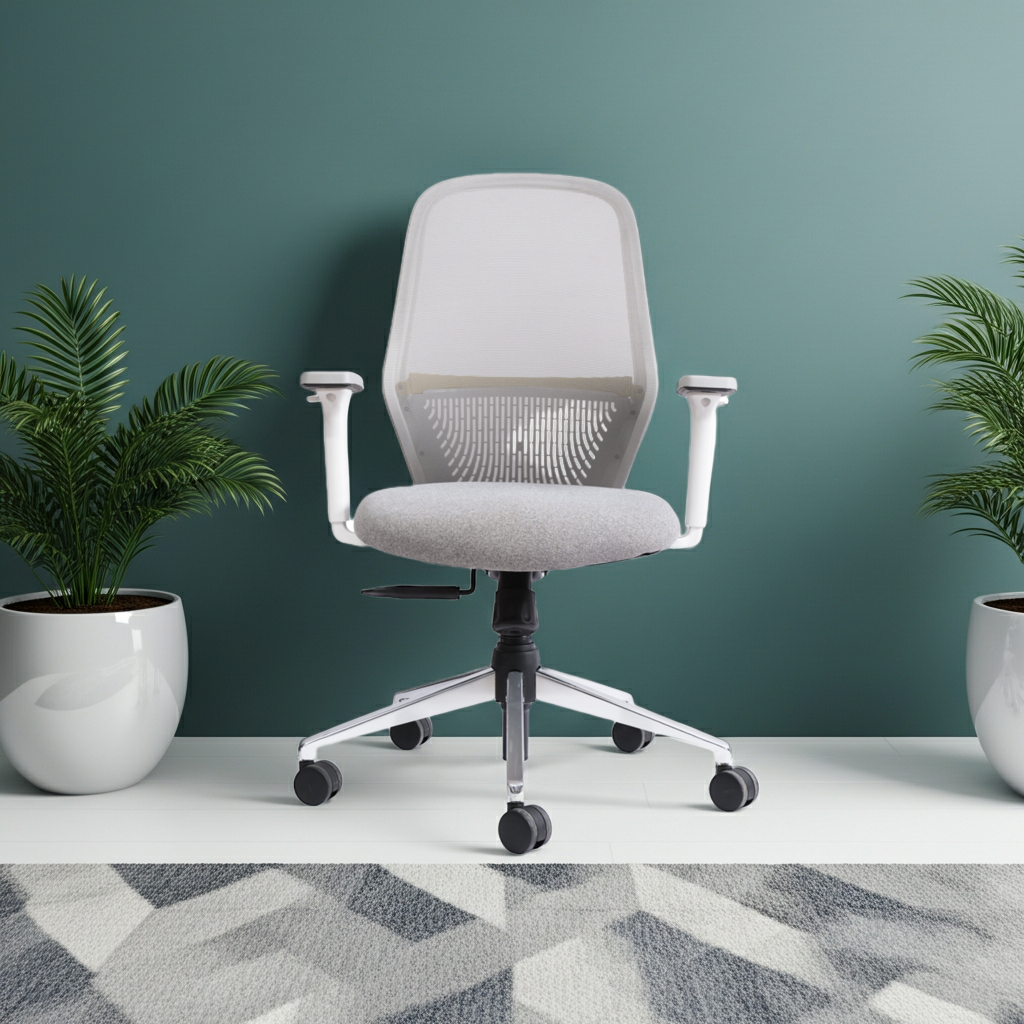 With adjustable armrests, smooth height control, and a reliable tilt mechanism, the Moscow Grey adapts to your seating needs. Its sturdy chrome-finished 5-star base with durable castor wheels ensures stability and effortless mobility. The elegant grey finish enhances any office or study setup with a sleek, professional look.