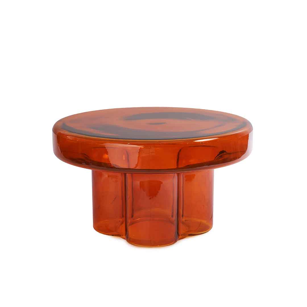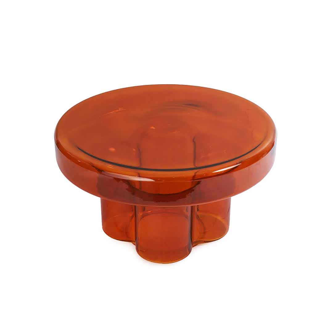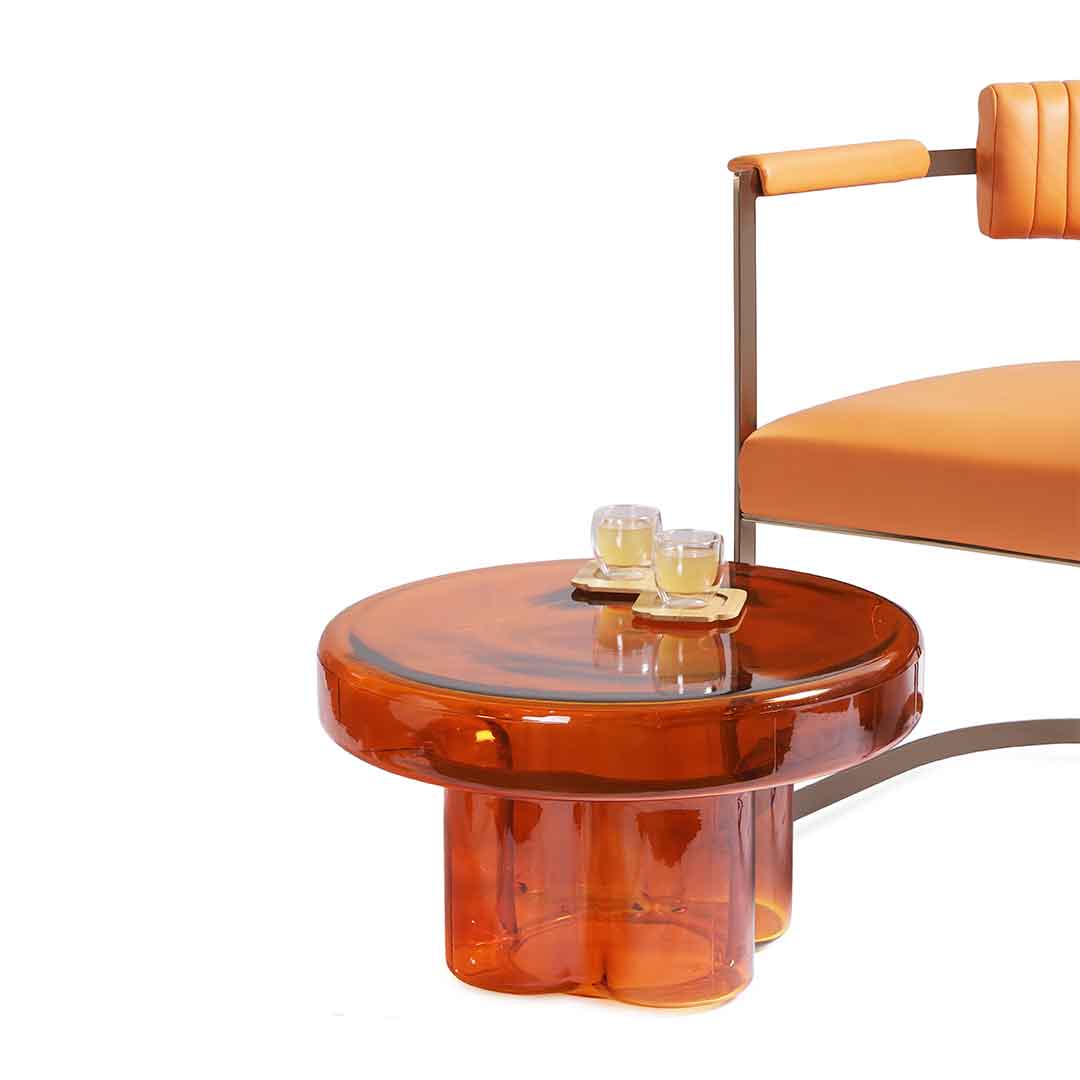 This round orange table adds a vibrant touch with its clear design, combining contemporary style with practicality.