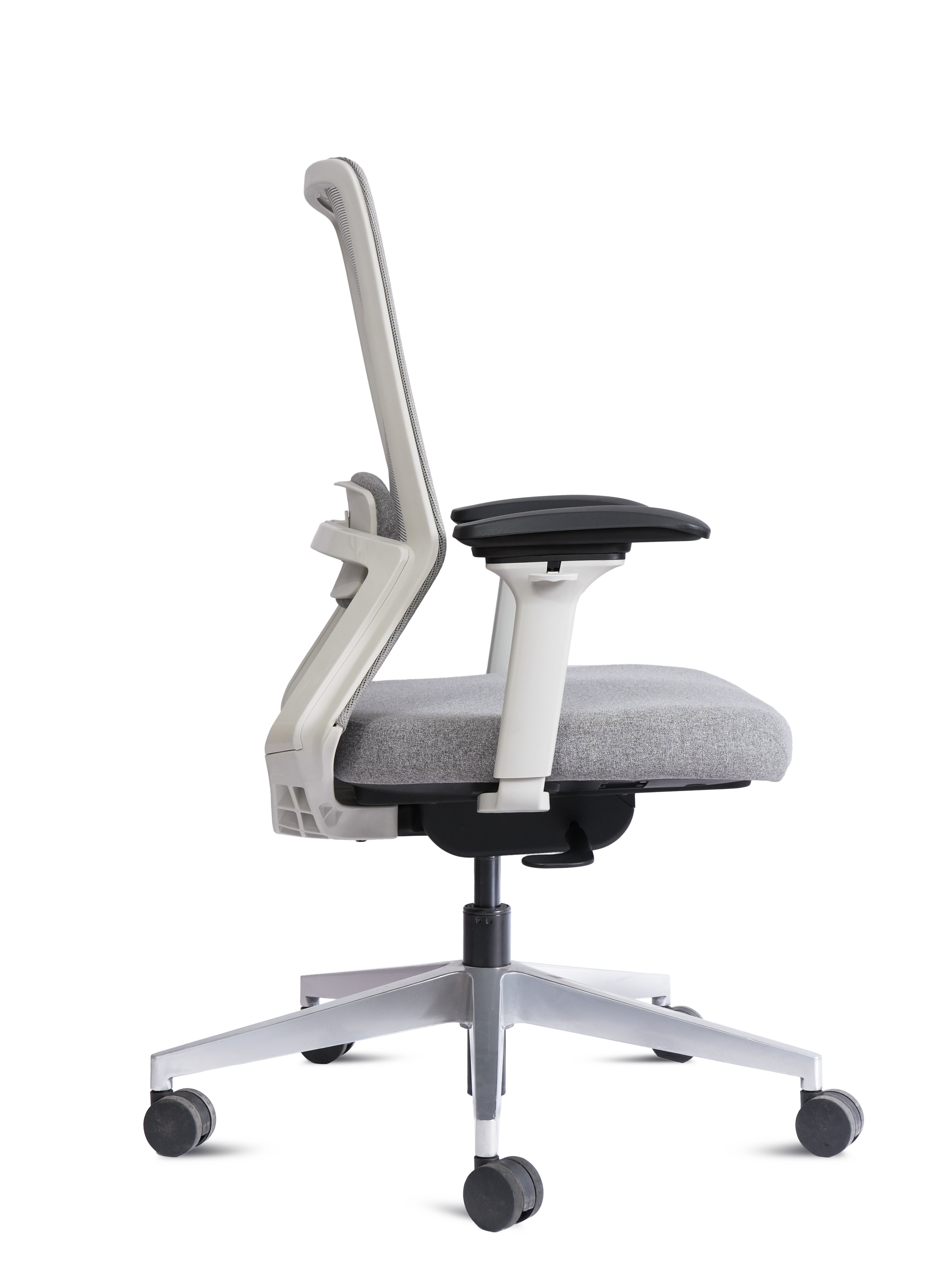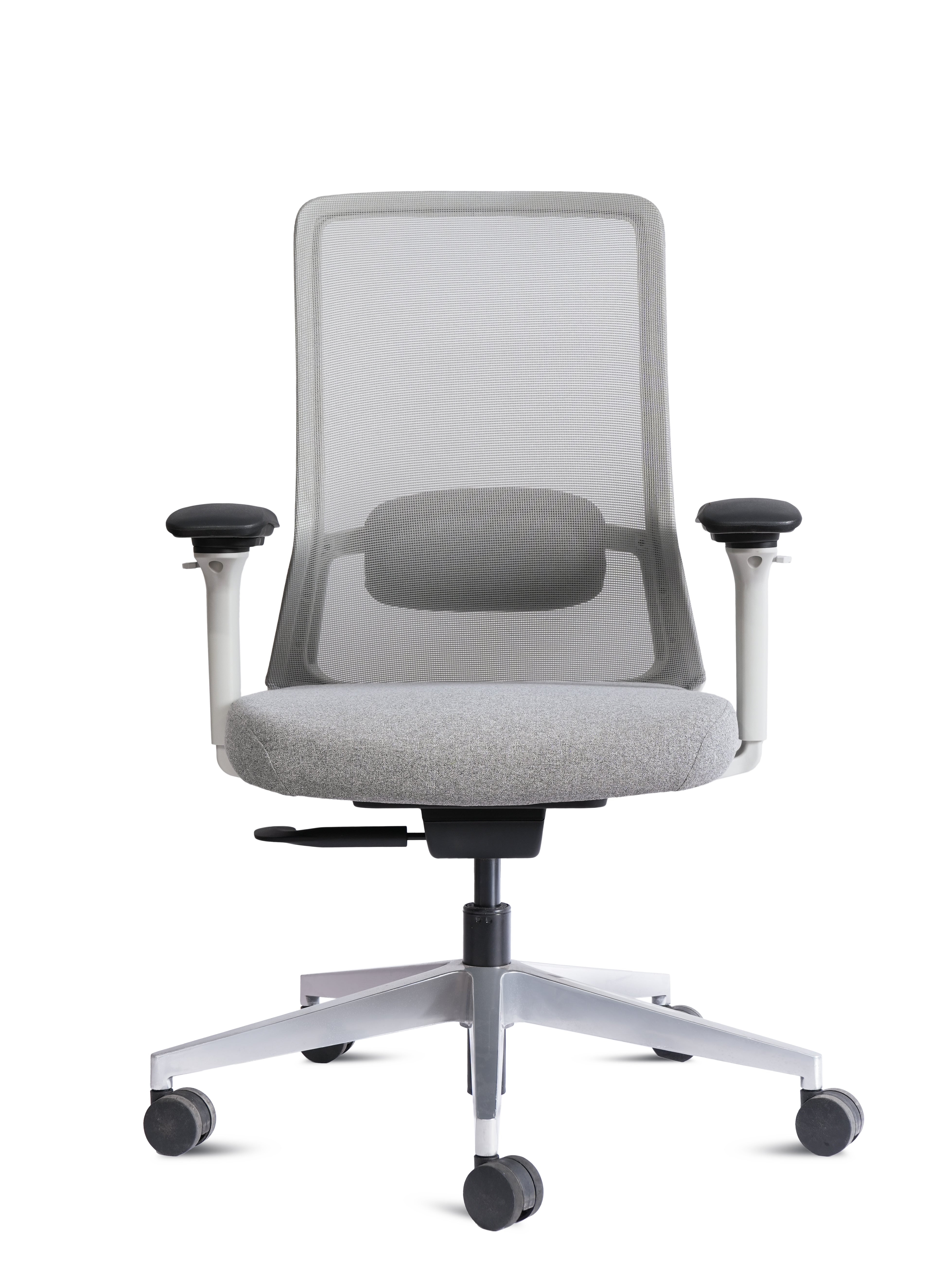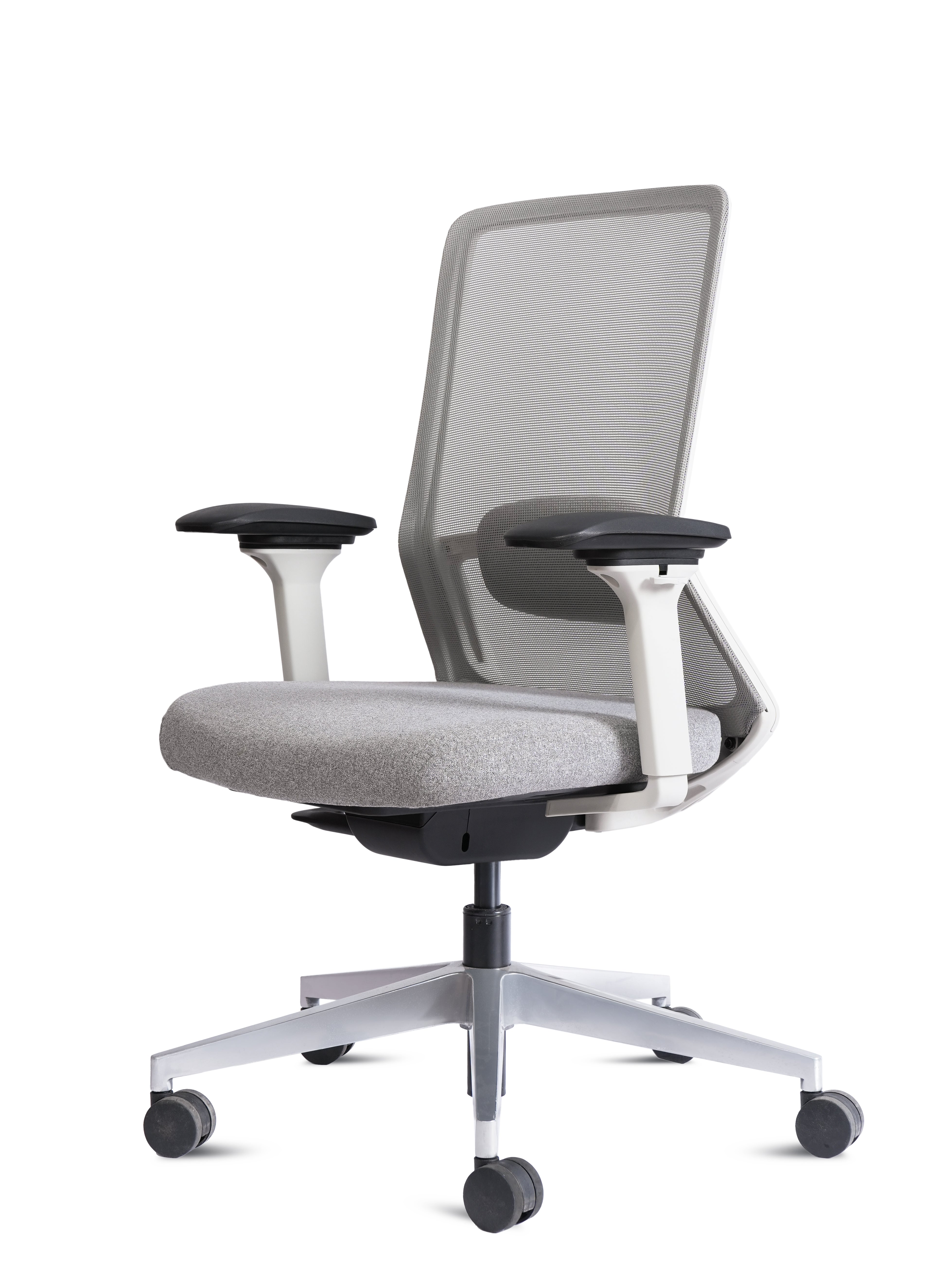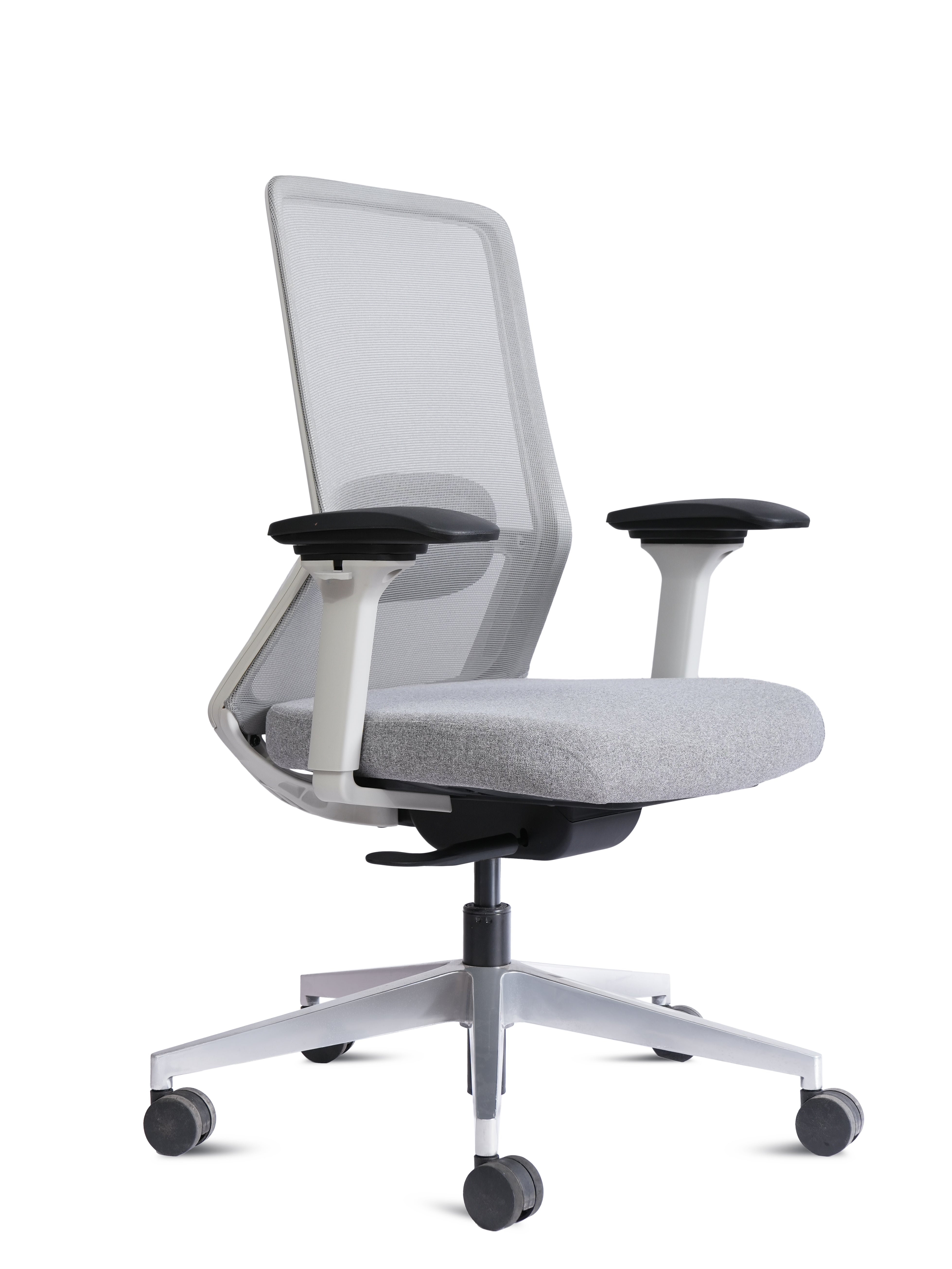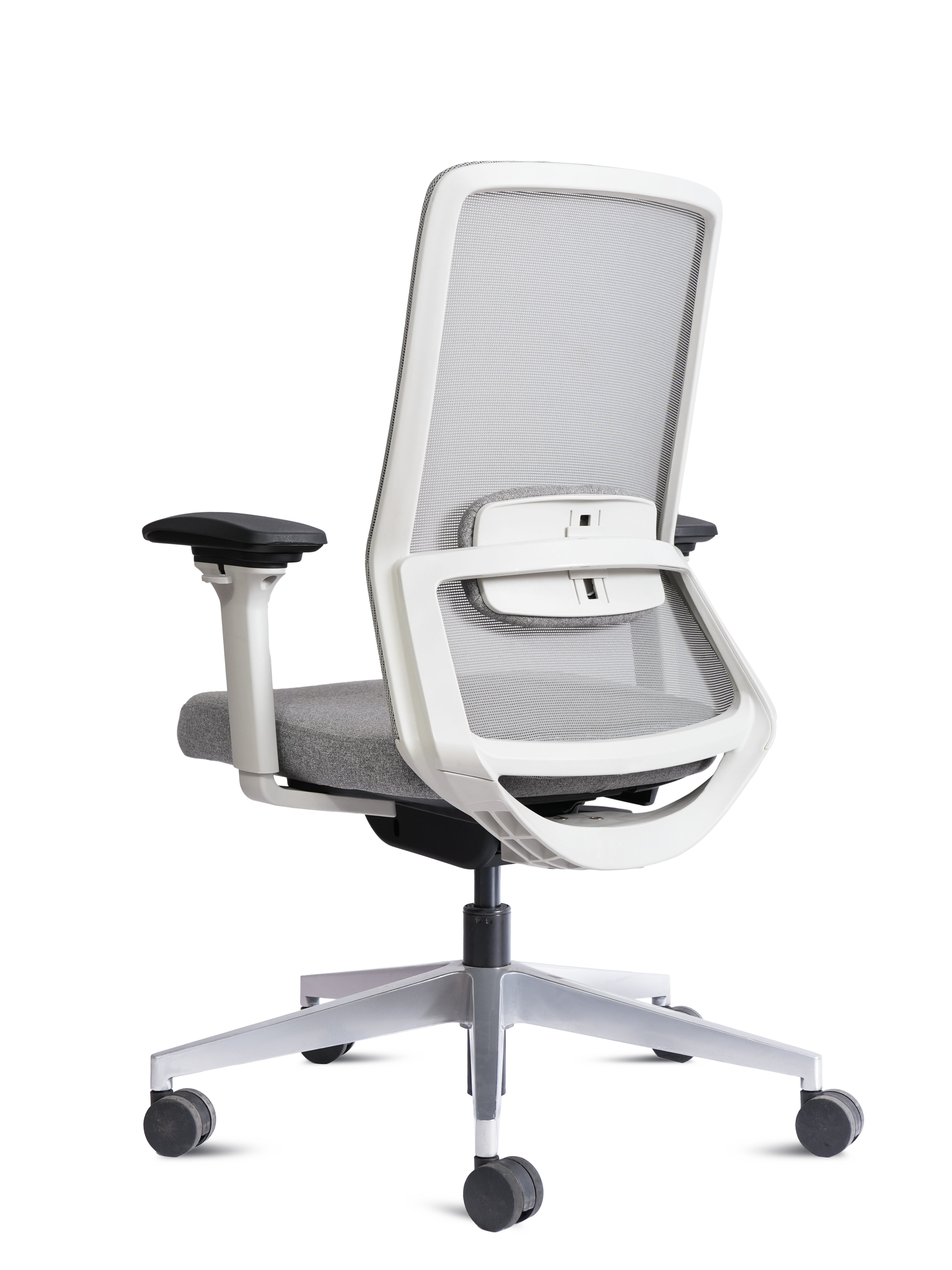 Equipped with adjustable armrests, smooth height adjustment, and a sturdy 5-star base with 360° swivel wheels, the Porto HB White is built for flexibility and durability. Its elegant white frame paired with a sleek grey finish makes it a perfect fit for both professional offices and stylish home setups.