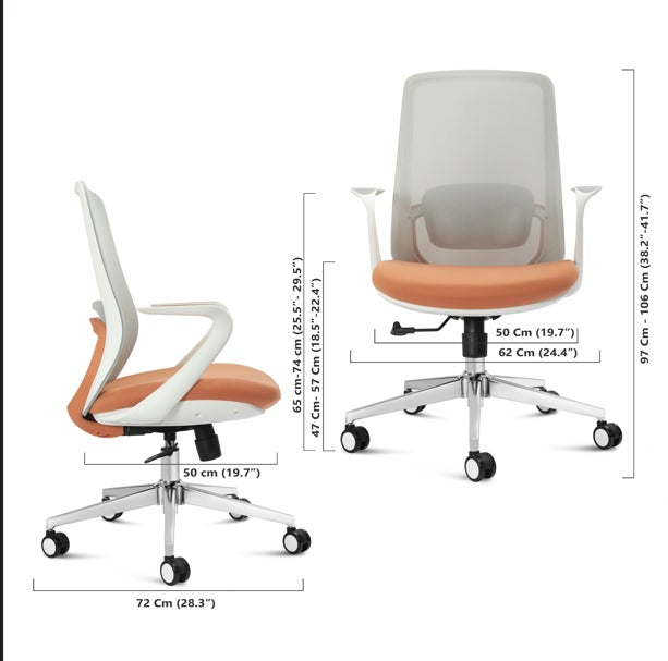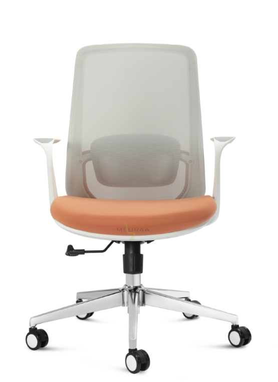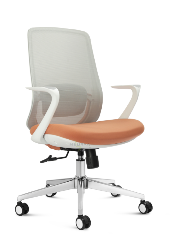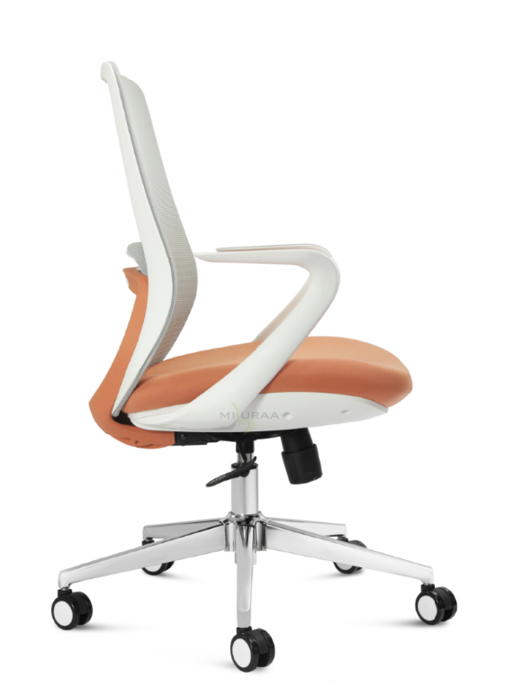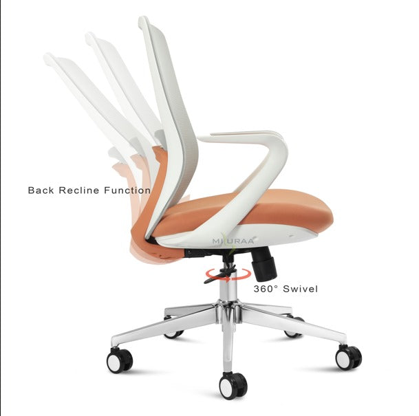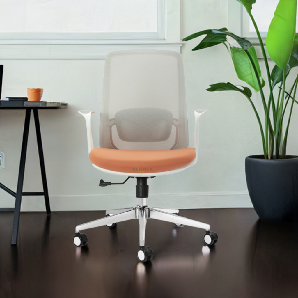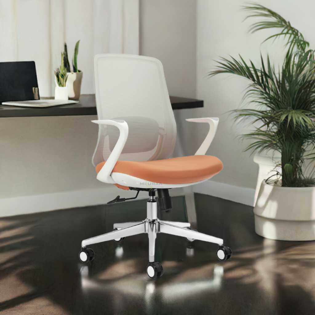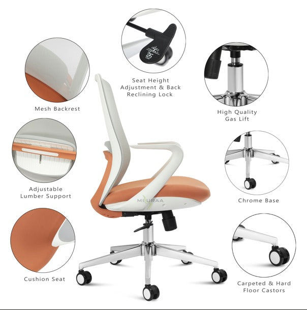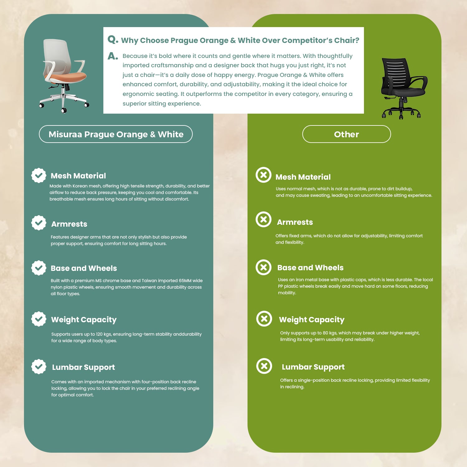 Elevate your workspace with the Prague Orange & White office chair, featuring a stylish Mesh Back for breathability. Enjoy ergonomic support with Adjustable Lumbar Support and a Cushioned Seat. Tilt Tension Control and Back Recline Locking ensure customizable comfort. The Chrome Base adds a modern touch, making it a sophisticated and functional choice for any office.