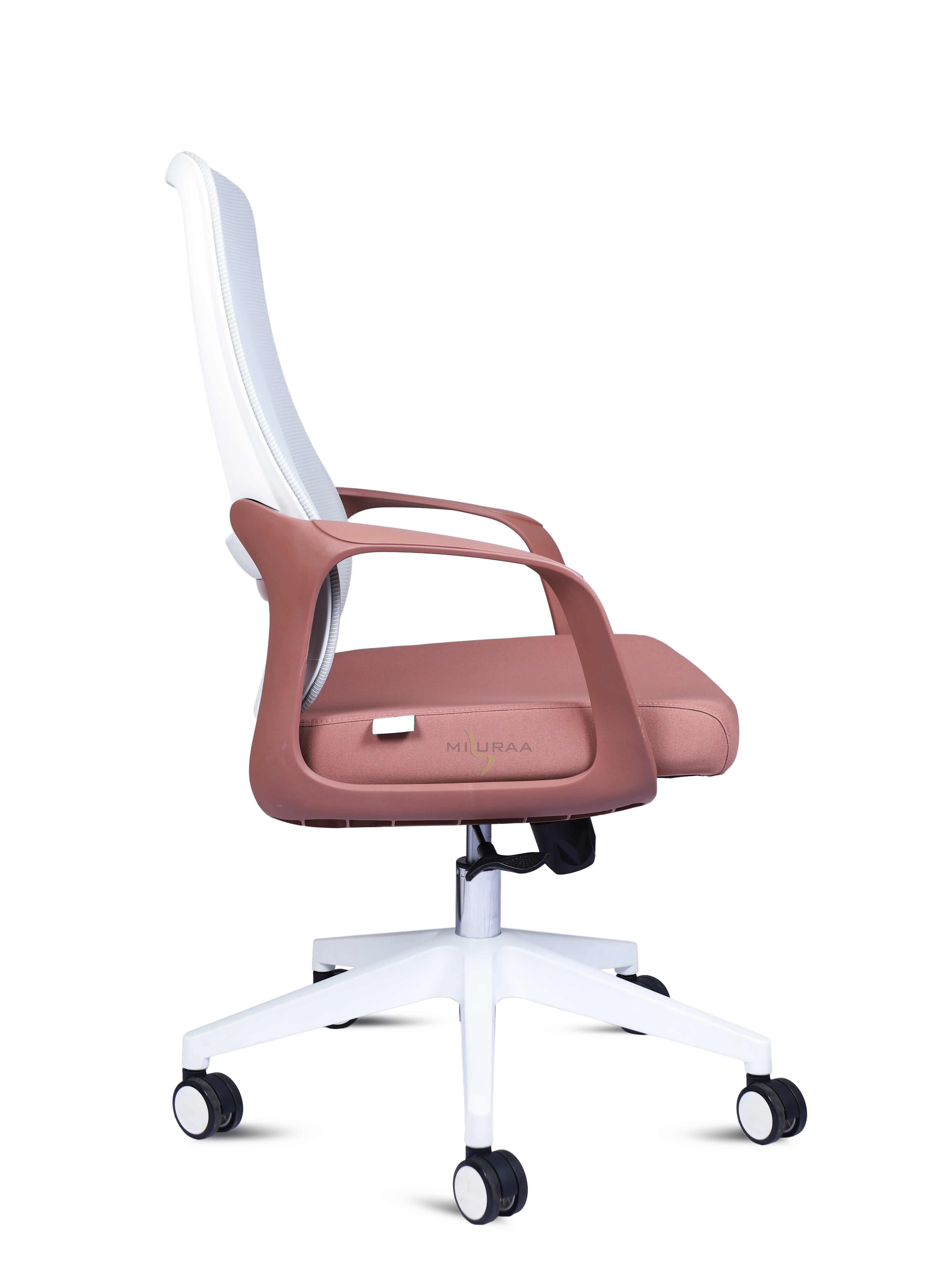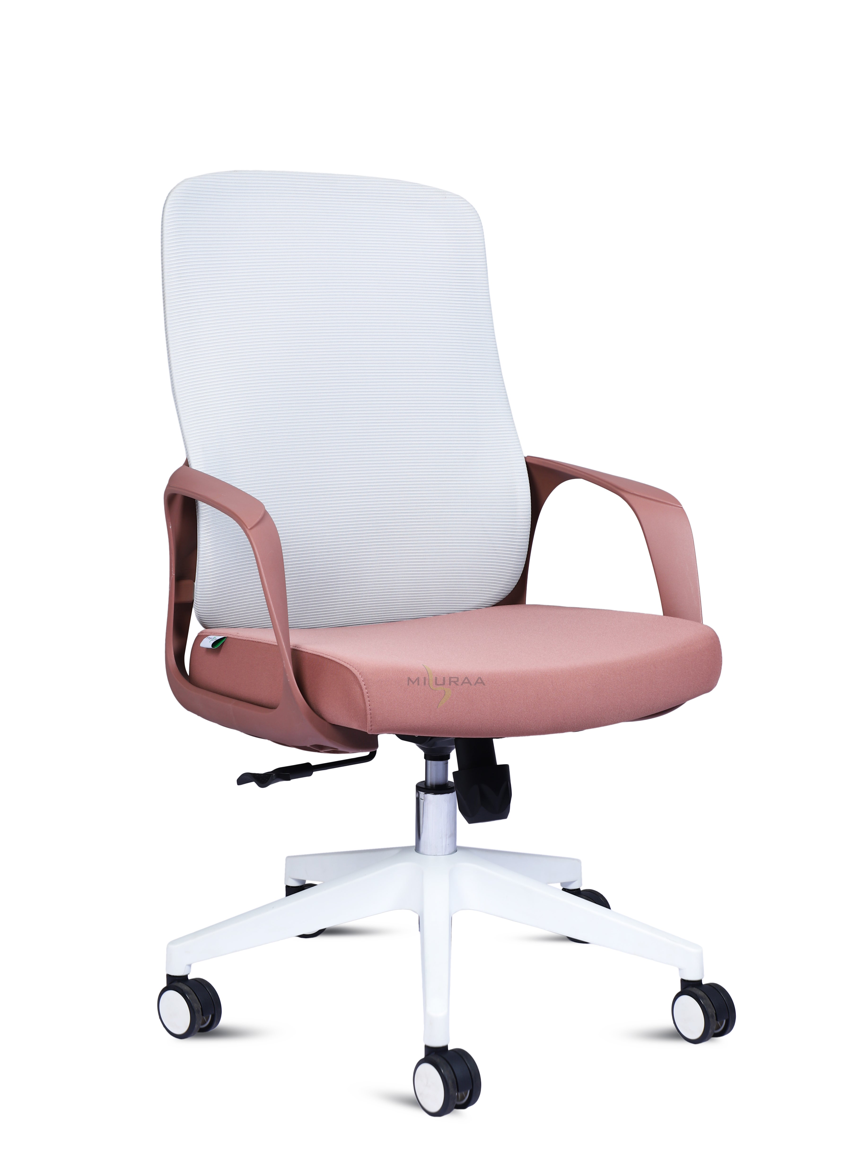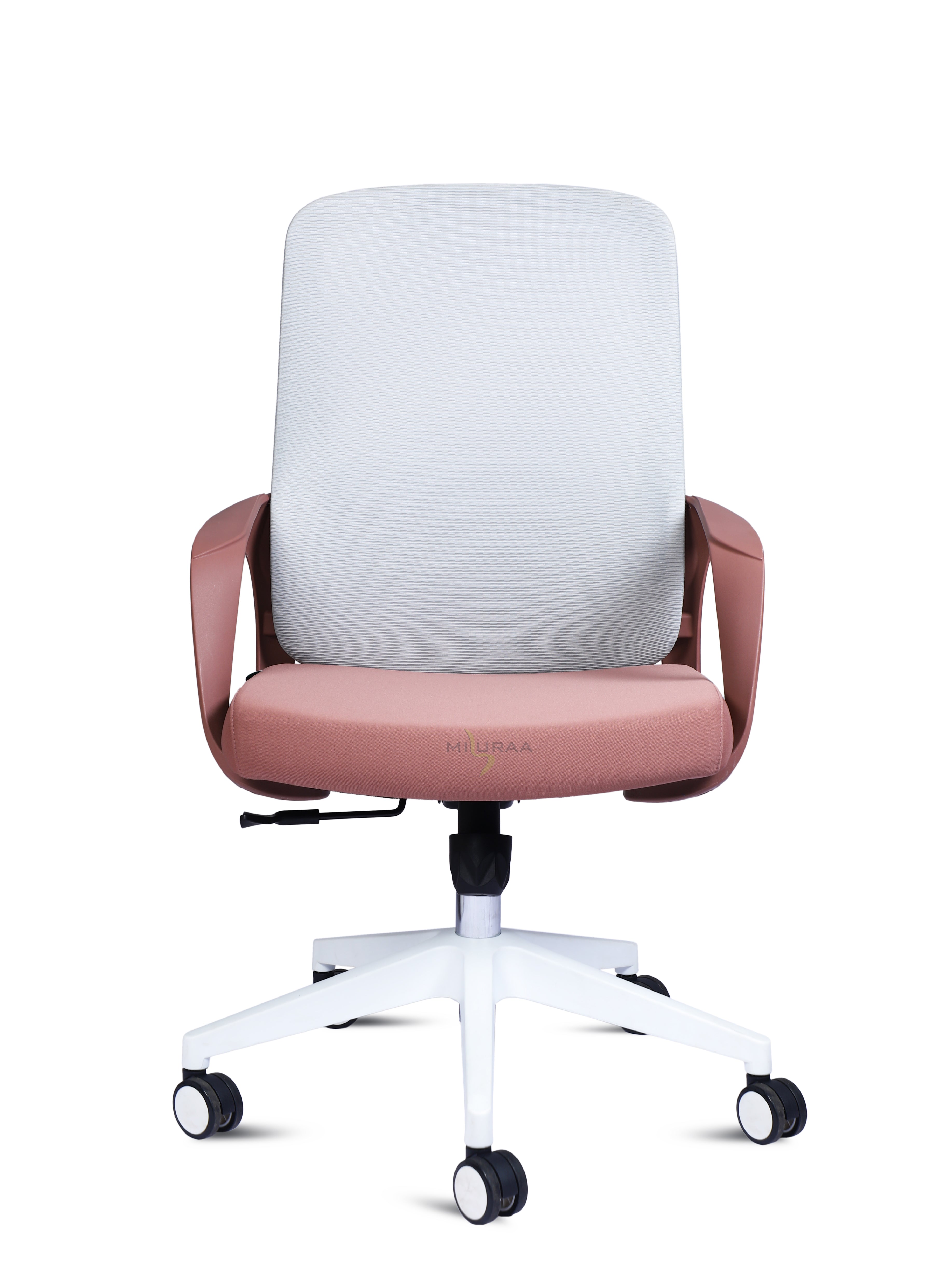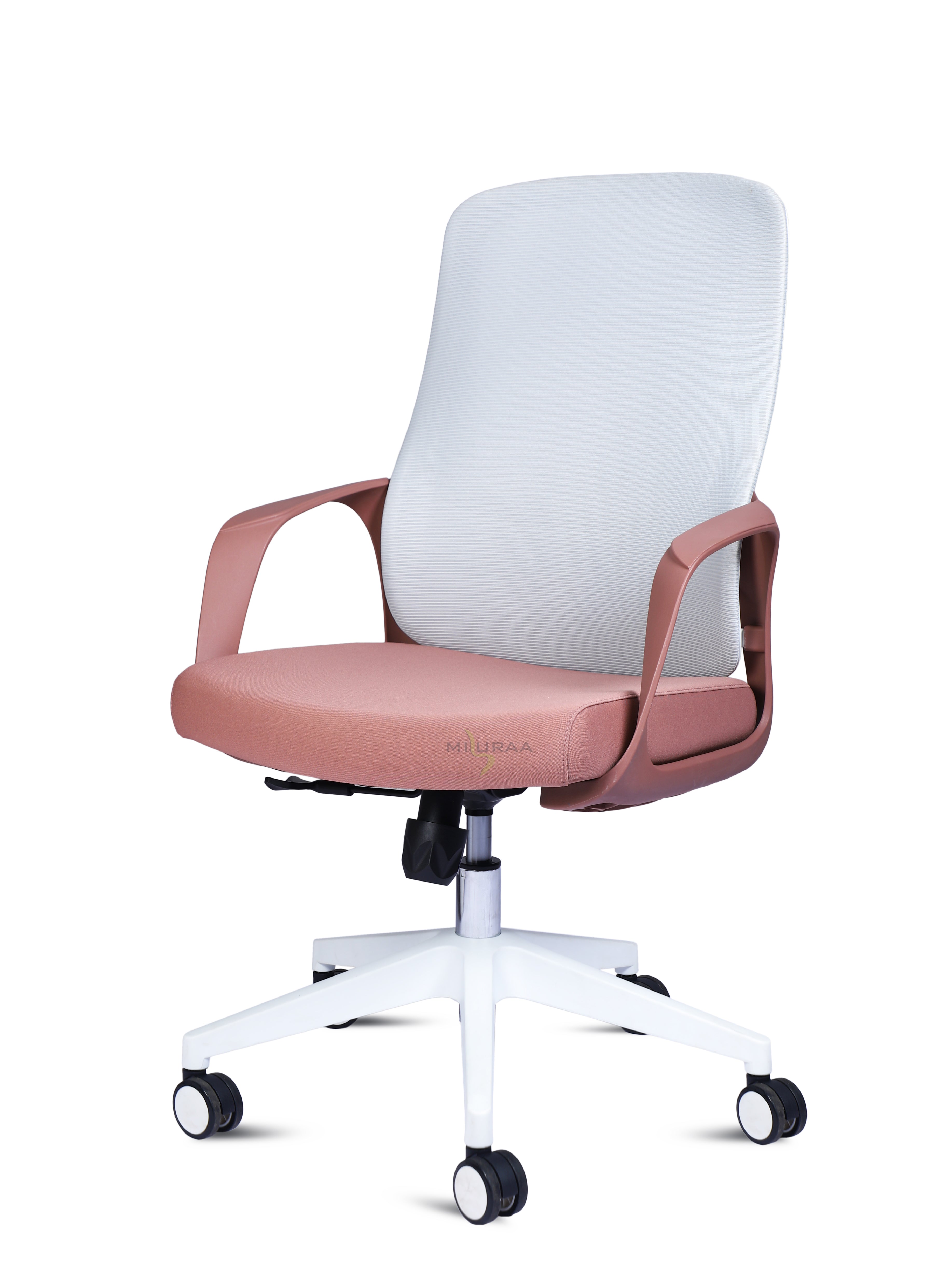 Elevate your workspace with the Rome Mid Back Blush Pink & Grey Office Chair, a perfect blend of modern aesthetics and ergonomic comfort. Designed with a stylish blush pink seat and armrests, complemented by a sleek grey mesh backrest, this chair adds a touch of elegance to any office or home setup.