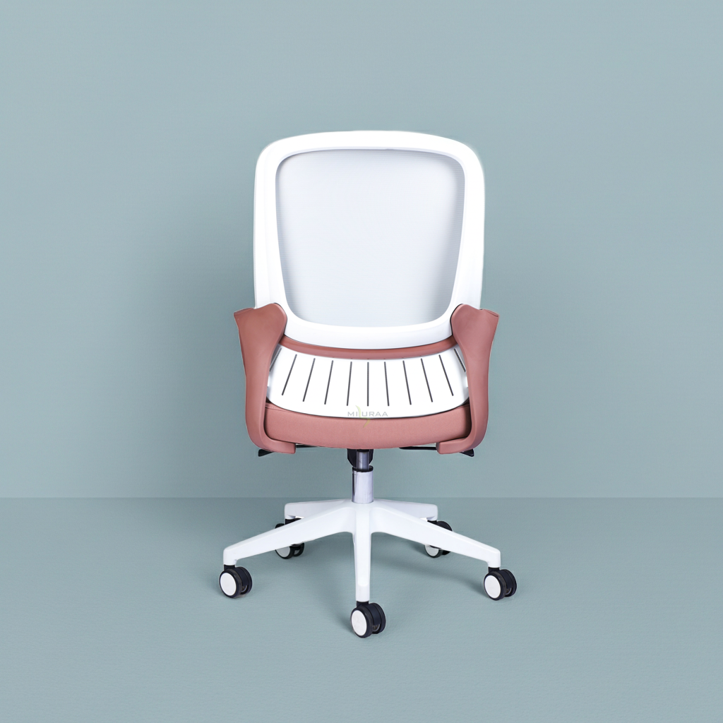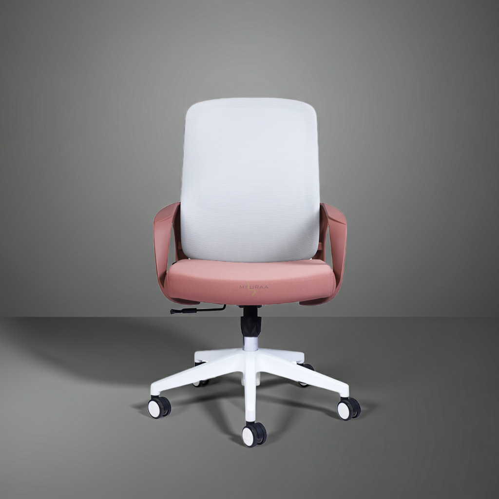 Elevate your workspace with the Rome Mid Back Blush Pink & Grey Office Chair, a perfect blend of modern aesthetics and ergonomic comfort. Designed with a stylish blush pink seat and armrests, complemented by a sleek grey mesh backrest, this chair adds a touch of elegance to any office or home setup.