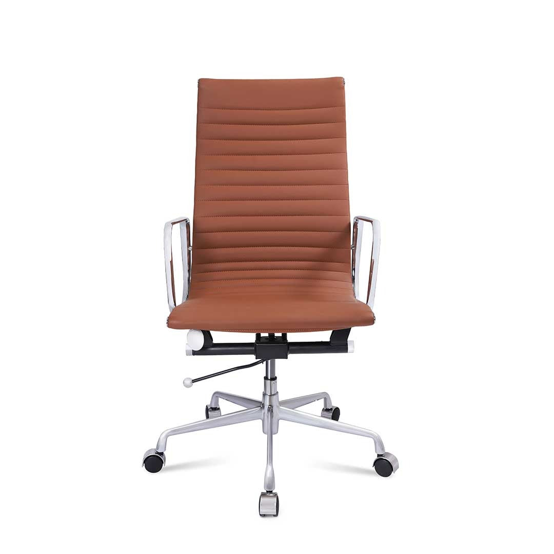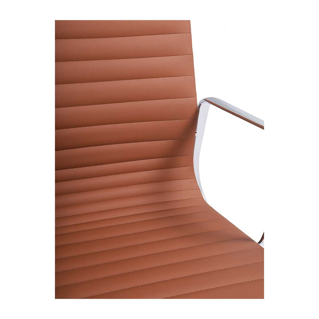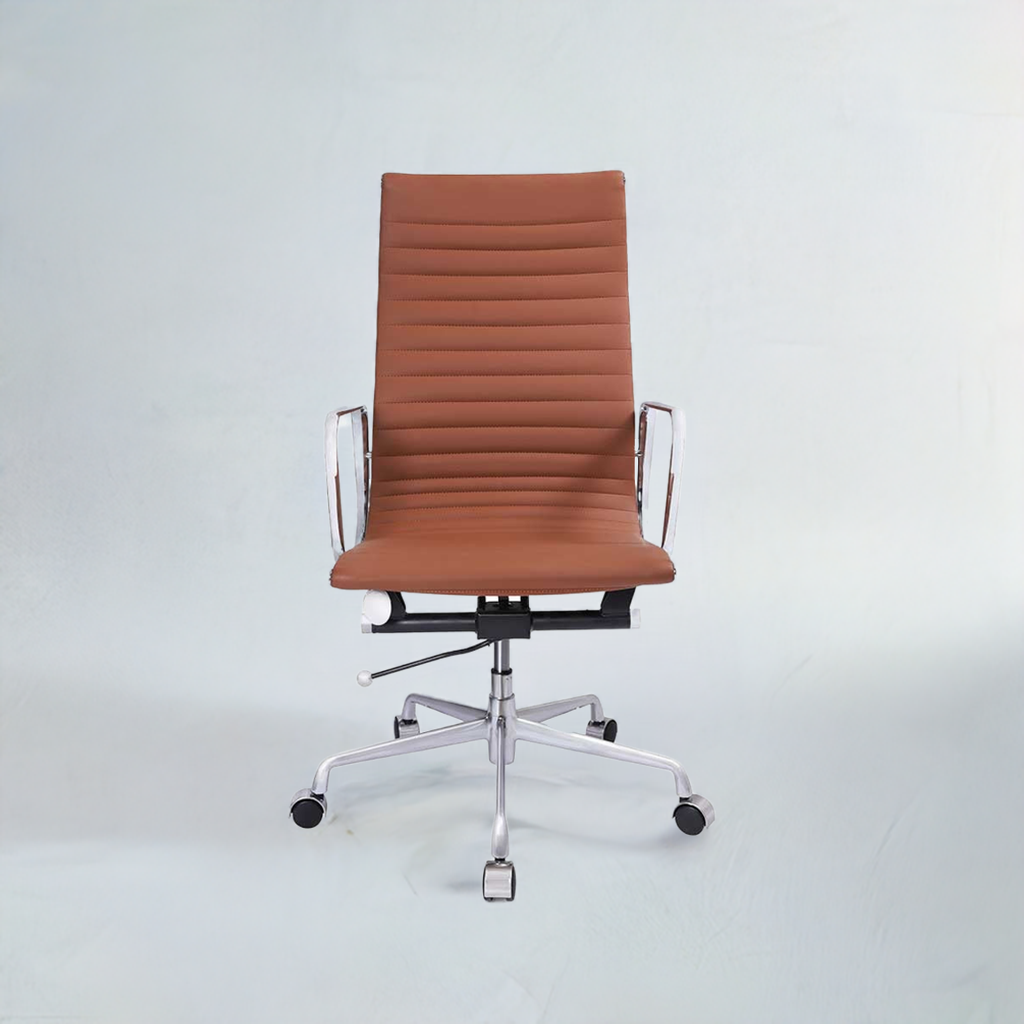 Sleek Tan high back is a legendary design by Charles & Ray Emaes that defines class and elegance. Upholstered with vegan leather it is just the ideal chair for any seating requirement.