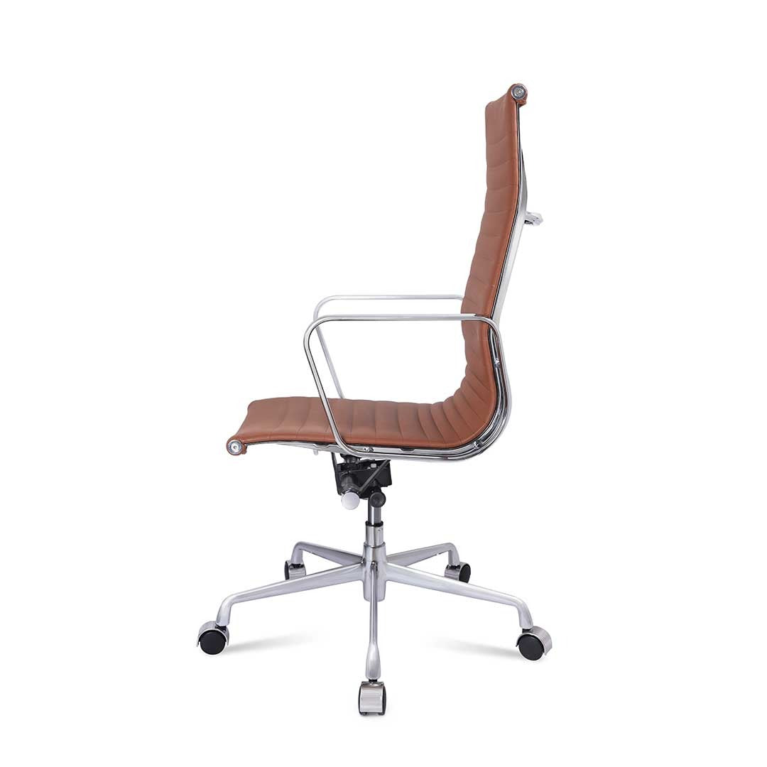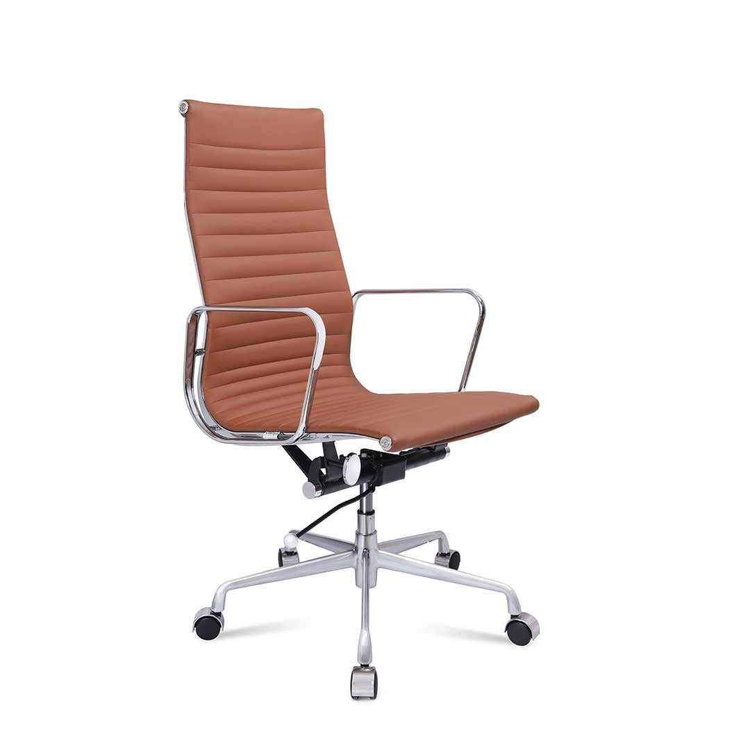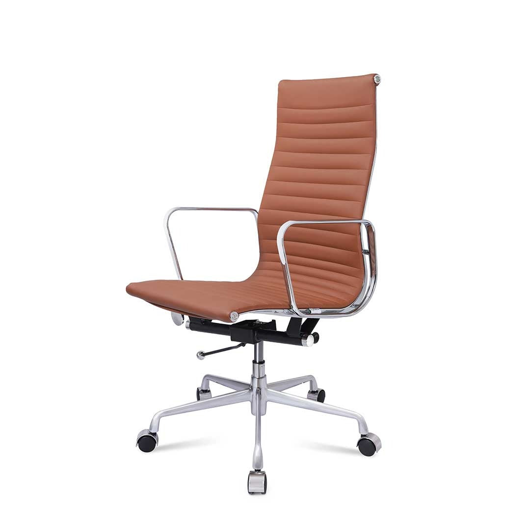 Sleek Tan high back is a legendary design by Charles & Ray Emaes that defines class and elegance. Upholstered with vegan leather it is just the ideal chair for any seating requirement.