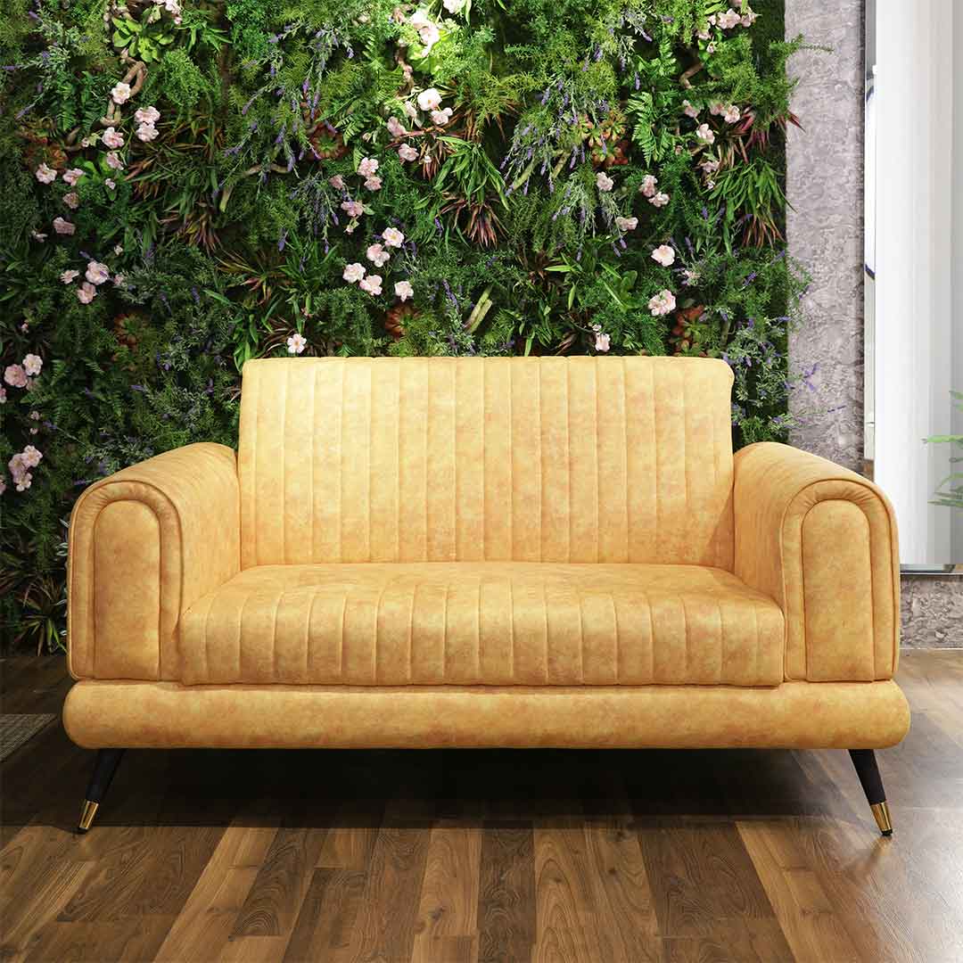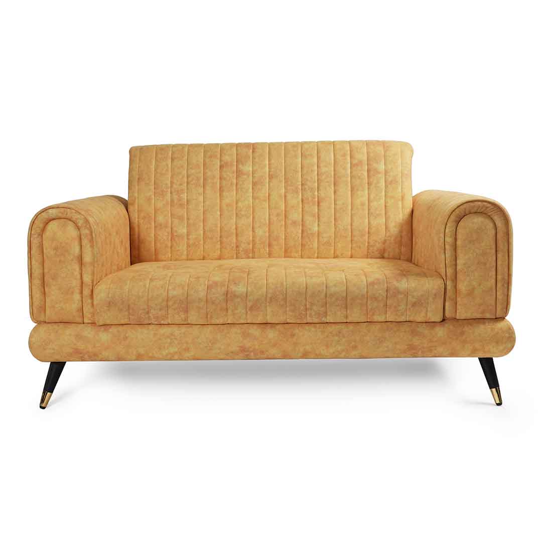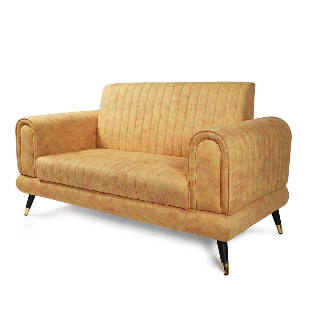Add a pop of color with our two-seater yellow sofa. Its vibrant hue brings a sunny and cheerful touch to your home decor.