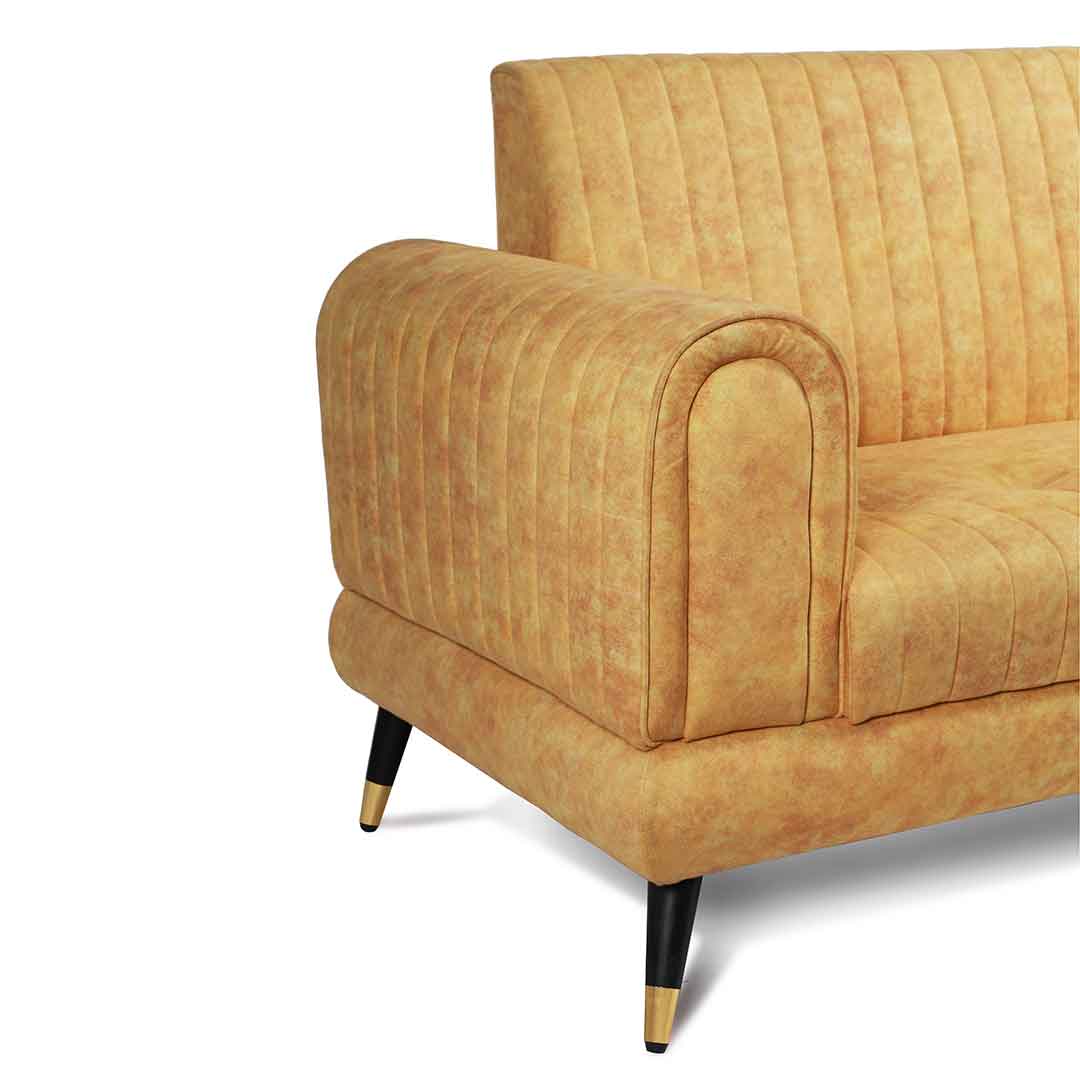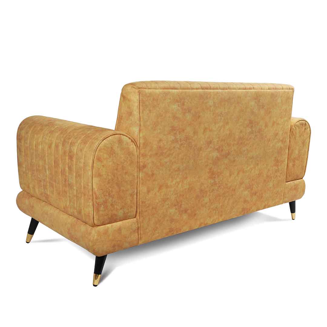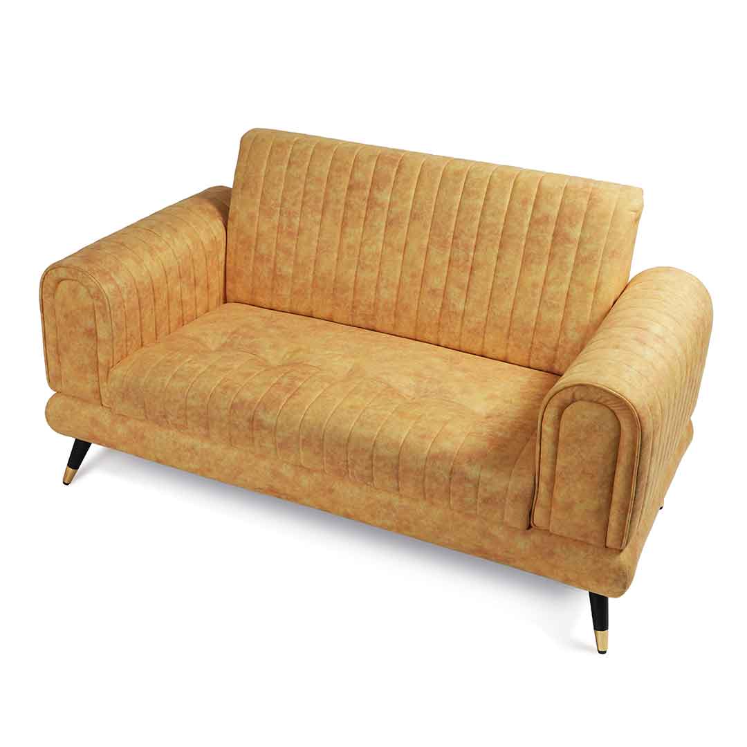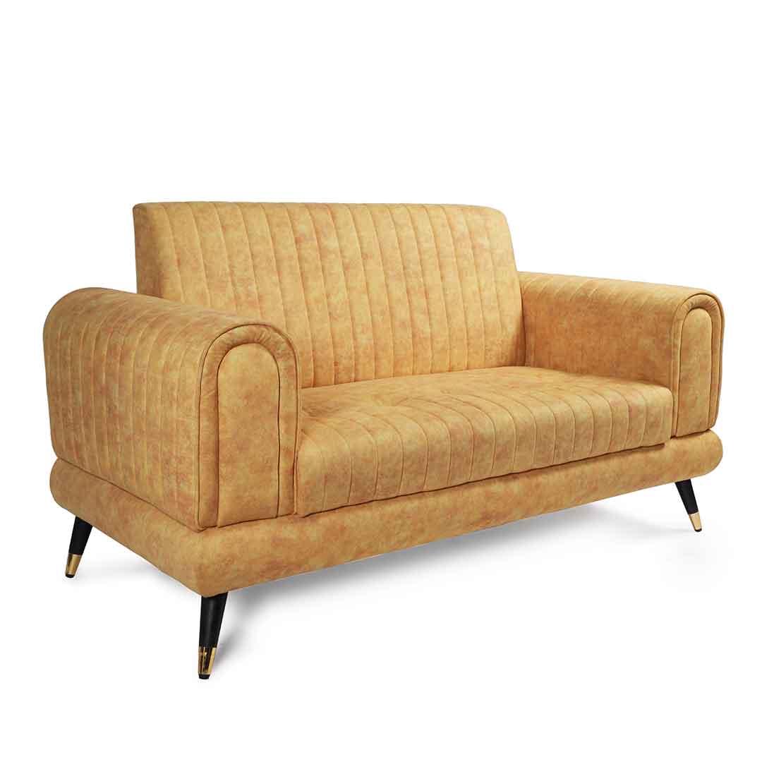 Add a pop of color with our two-seater yellow sofa. Its vibrant hue brings a sunny and cheerful touch to your home decor.