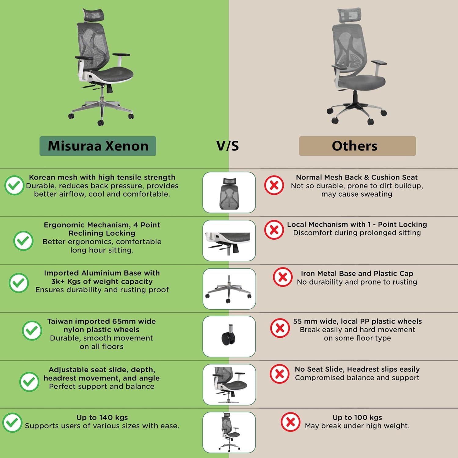 Elevate your workspace with the innovative Xenon White High back ergonomic office chair. Crafted to enhance productivity and comfort, its breathable mesh design regulates body temperature, ensuring a refreshing seating experience even during long working hours. Effortlessly install and enjoy the freedom of movement provided by the high-quality nylon mesh construction. Experience the perfect blend of style, functionality, and comfort with Xenon White High back chair.